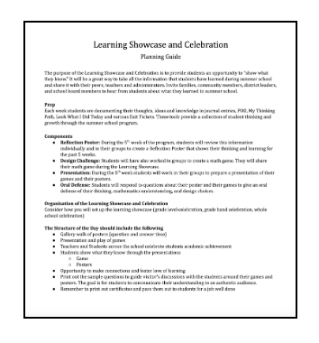 *Parents, community members, school administrators, teachers, and board members should be invited to this showcase and celebration.